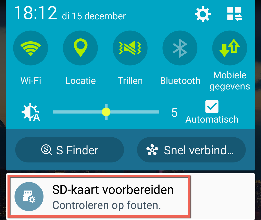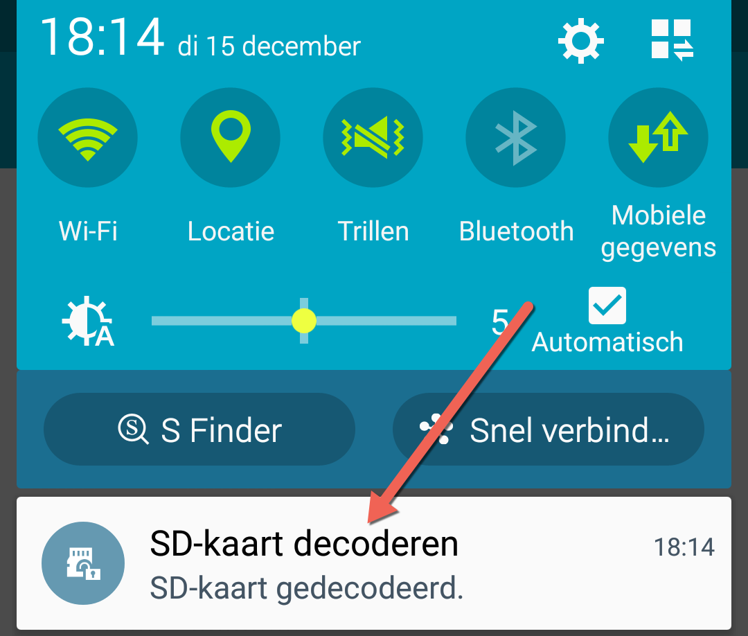 Onlangs probeerde ik mijn werk e-mail op mijn telefoon (Samsung Galaxy S5) in te stellen. Dit verliep verder prima, maar vereiste dit instellen echter wel dat mijn SD-kaart ook gecodeerd werd. Dat had niet direct mijn voorkeur, maar dacht laat ik het maar eens proberen als het dan echt moet. Dus de installatie verder afgemaakt en kon inderdaad mijn e-mail nu op mijn telefoon lezen. Dit veroorzaakte echter wel andere problemen. Ik kreeg namelijk foutmeldingen dat mijn SD-kaart niet meer herkend werd en ik deze dus ook niet meer kon benaderen. Niet echt de bedoeling. Dus ik mijn werk e-mail weer snel van mijn telefoon verwijderd en proberen de SD-kaart de decoderen. Wat pogingen werkte dit eindelijk en was mijn SD-kaart weer zichtbaar.